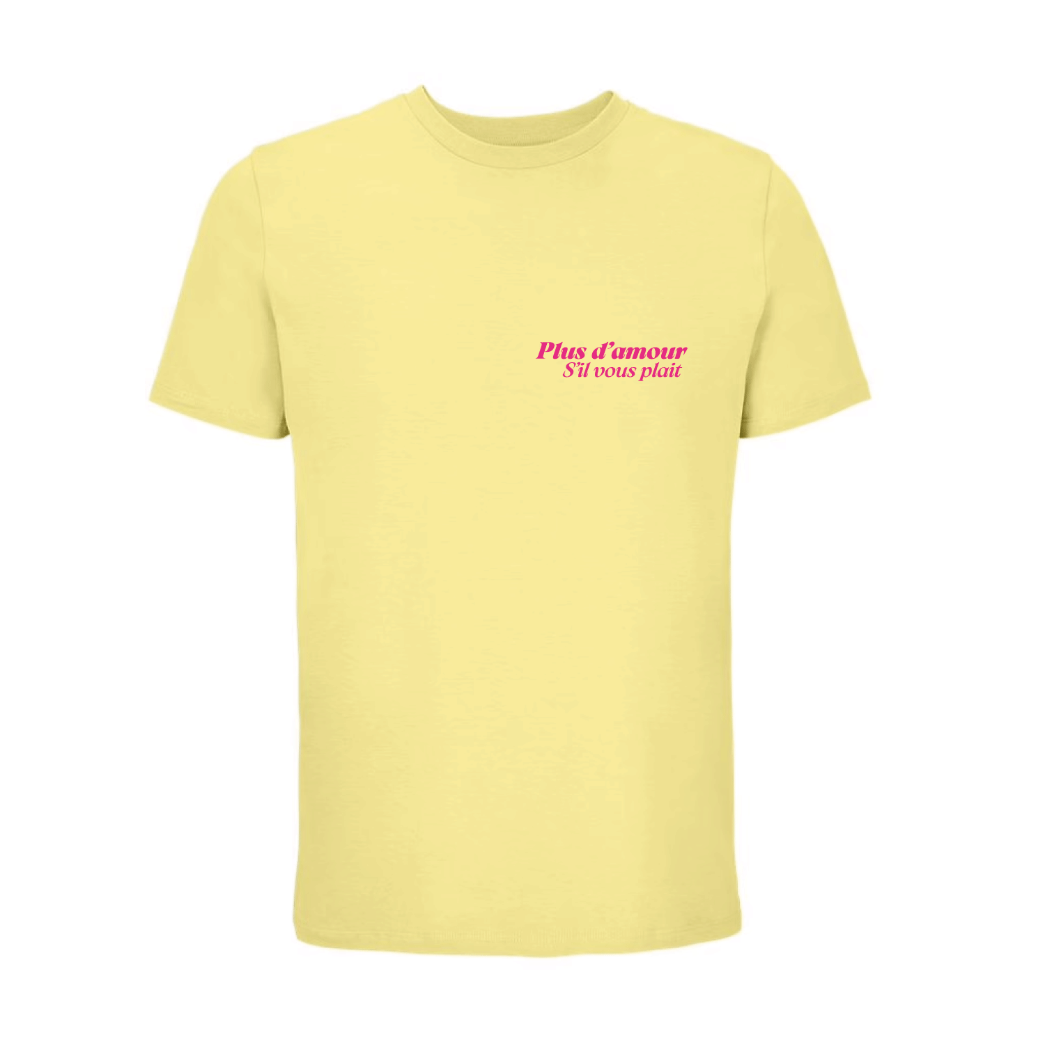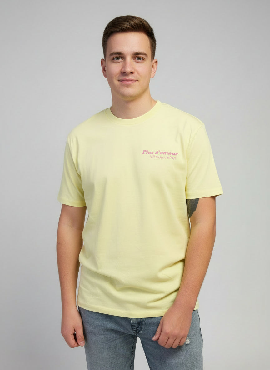 Camiseta unisex amarilla "Plus d'amour s'il vous plait" -Hilma Studio-